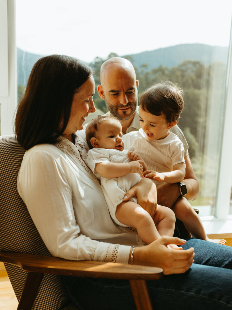Otra opción ideal cuando hay bebés de menos de 12 meses, es hacer la sesión en casa o en el estudio, un lugar cálido y acogedor dónde podremos centrarnos en documentar vuestro vínculo de forma más íntima.